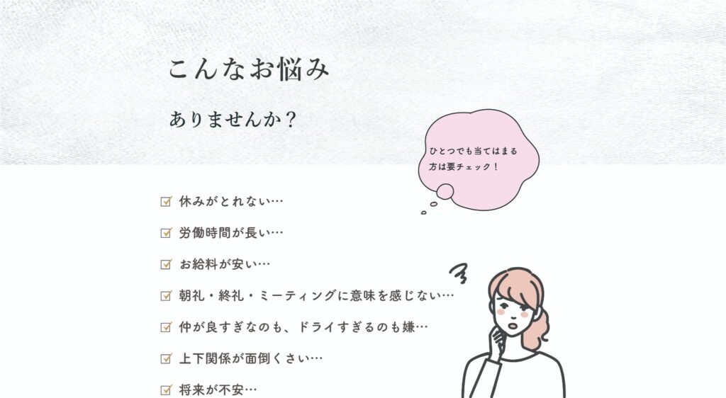 自分でシフトを組めるので、予定を立てやすいところです。この日は友達と晩ご飯を食べに行くという日には早く上がったりと、しっかりプライベートの楽しい時間も作ることができるので、次の日の仕事も頑張ろうと思えます。ストレスなく仕事とプライベートの両立ができることは、働きやすさでもありますし、モチベーションも高く保つことができます。